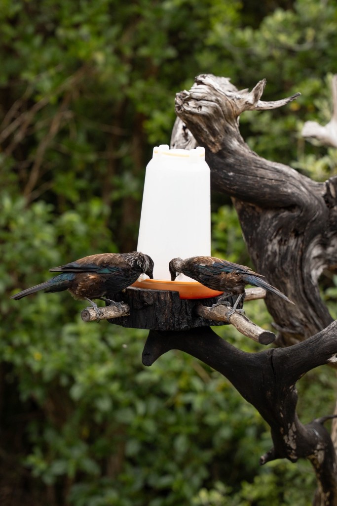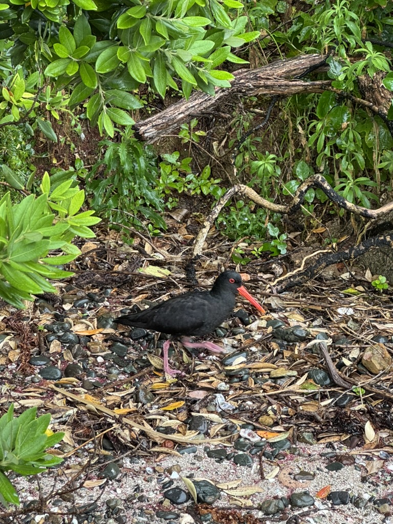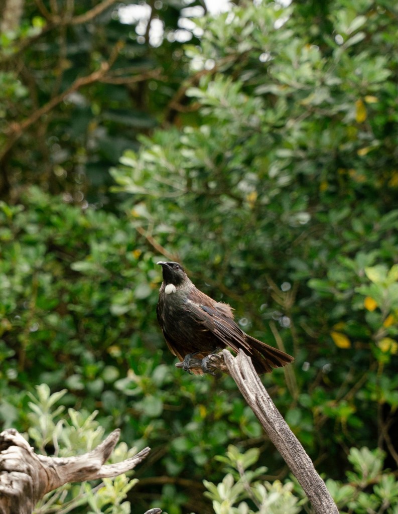 Unfortunately, we woke up to a very wet morning. It was raining quite hard and we had to get to the ferry that would take us to Tiritiri. For a moment we thought about not going but we charged ahead despite the rain. We decided to skip the guided walk and hike the 5-mile, Tiritiri Matangi Perimeter Loop instead. It stopped raining after about a mile and the rest of the day was quite pleasant. It was a good hike with some elevation and wildlife. We saw Tui’s, a brown quail called Kuera, Oyster Catchers, a Bell bird, a Red-crowned parakeet, a Pukeko also known as the purple swamphen and a Kereru also called New Zealand pigeon.