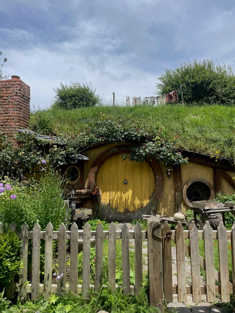 Located between Hamilton and Rotorua is the Shire, Home of the Hobbiton Movie Set where The Lord of the Rings and The Hobbit Trilogies were filmed, our first formal tour. Madeleine and I went on our own as Tracy plans to go when his brother and sister-in-law come to visit. In full disclosure Madeleine and I have not seen the movies or read the books but wanted to go anyhow because that’s just what you do in New Zealand.